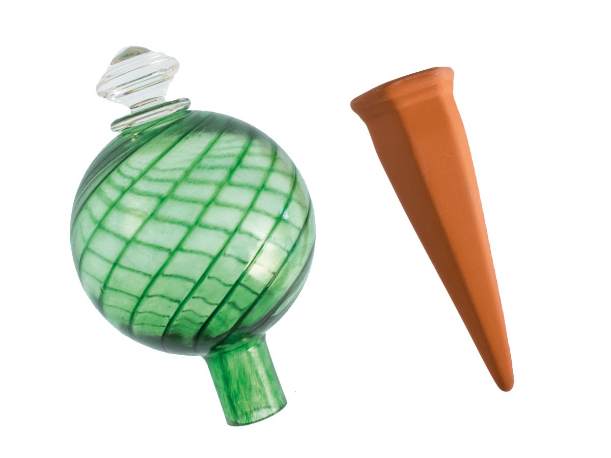 These glass watering globes work well for small plants and provide reliable automatic watering for up to five days.