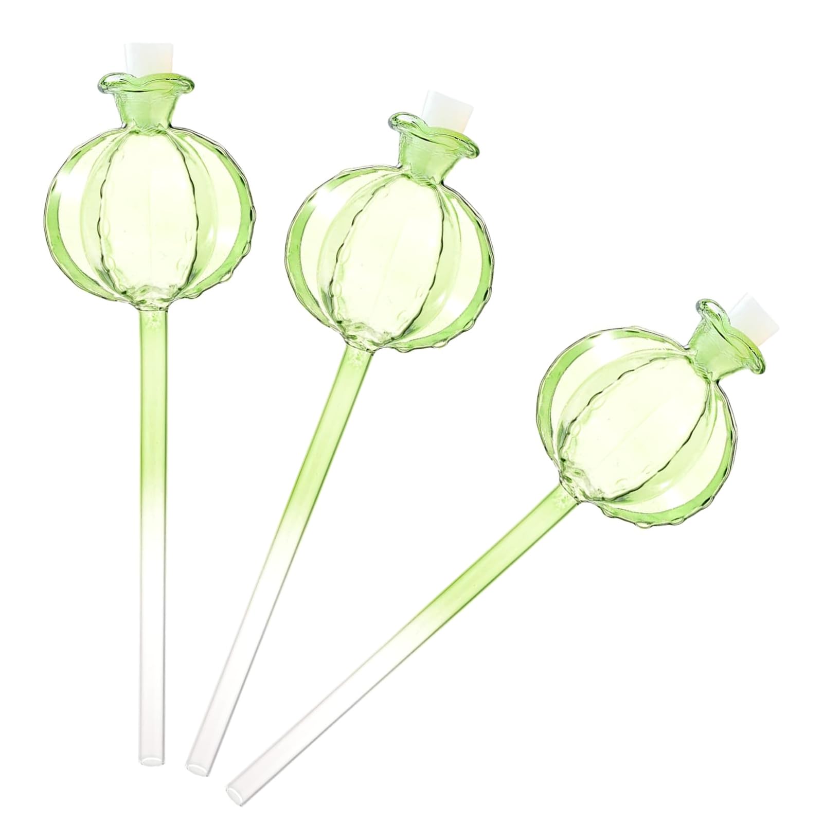 I tested these watering globes on my houseplants during a three-day weekend trip. The setup was incredibly easy – just fill with water and push the narrow end into the soil near the roots. The green glass looked nice sitting in my plant pots.